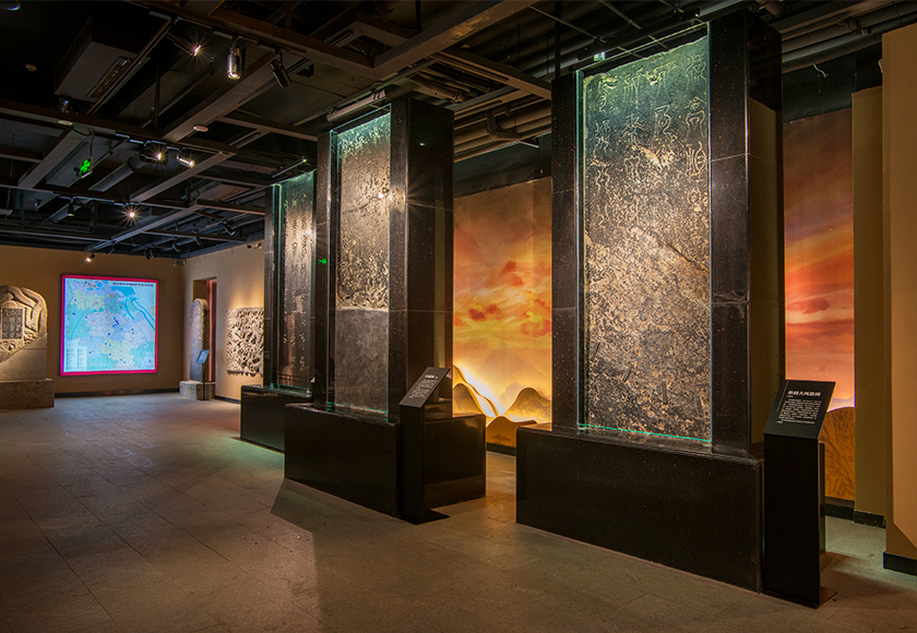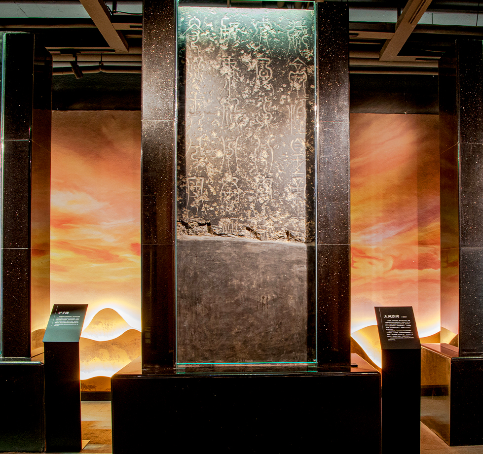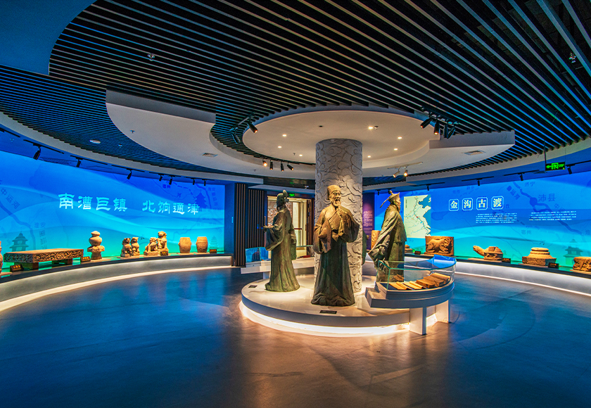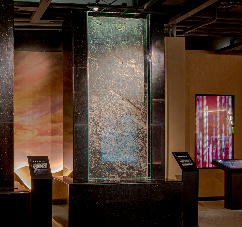 一楼大厅里的大型煅铜浮雕壁画《归故乡》和5米高刘邦铜像,主要展示了汉高祖刘邦建立汉朝之后,回到故乡,邀宴家乡父老,把酒言欢,击筑高唱大风歌的历史盛况。重点展示沛县博物馆镇馆之宝汉代大风歌碑,同时展示见证沛县悠久历史的石刻精品文物。