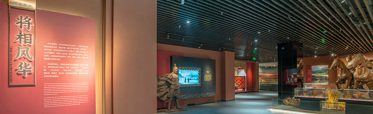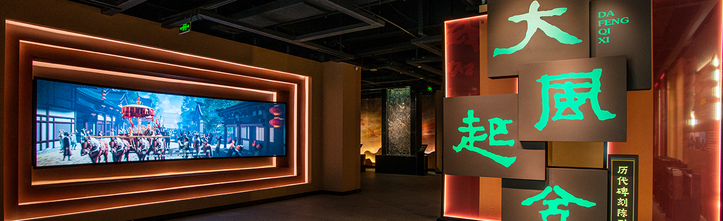一楼大厅里的大型煅铜浮雕壁画《归故乡》和5米高刘邦铜像,主要展示了汉高祖刘邦建立汉朝之后,回到故乡,邀宴家乡父老,把酒言欢,击筑高唱大风歌的历史盛况。