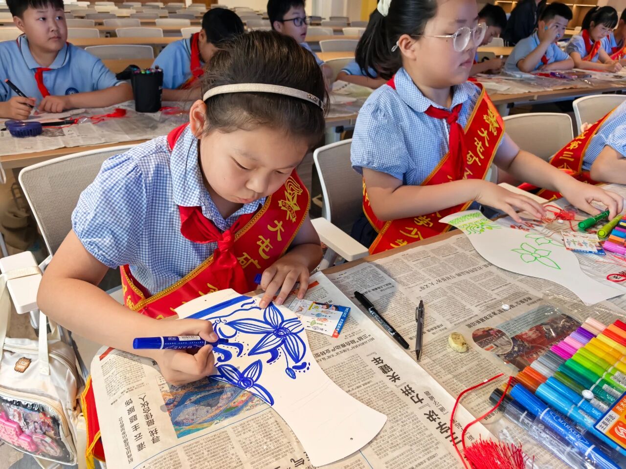 在 “我为文物添添彩”活动中,小朋友们发挥自己的想象力,亲手为文物线稿模板设计图案、上色,成为了“小小文物设计师”。活动现场,小朋友都全神贯注地勾勒线条、填涂颜色,完成了一件件独具特色的“文物”作品。许多小朋友表示,这种沉浸式体验让他们对古代工匠的智慧有了更深刻的理解。
