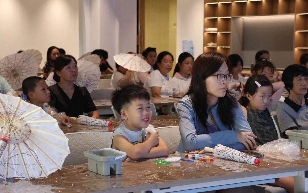 活动伊始,社教老师用生动的语言,为孩子们揭开了油纸伞这一国家级非物质文化遗产的神秘面纱。小朋友们听得津津有味,了解了油纸伞悠久的历史、美好的寓意以及精湛的传统制作工艺,在心中种下了传统文化的种子。