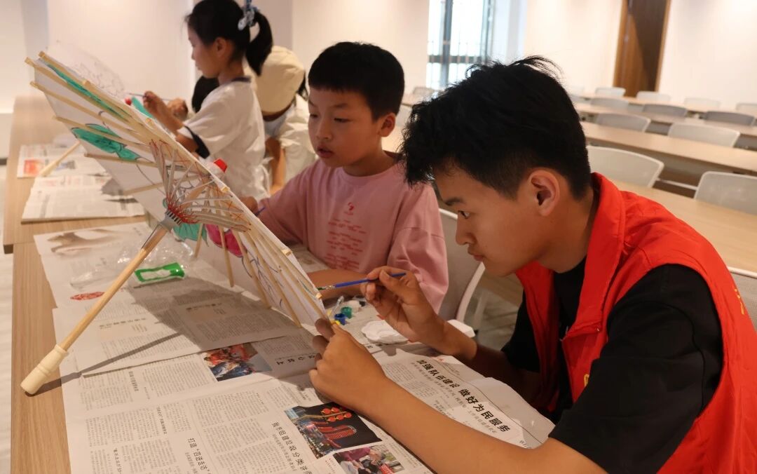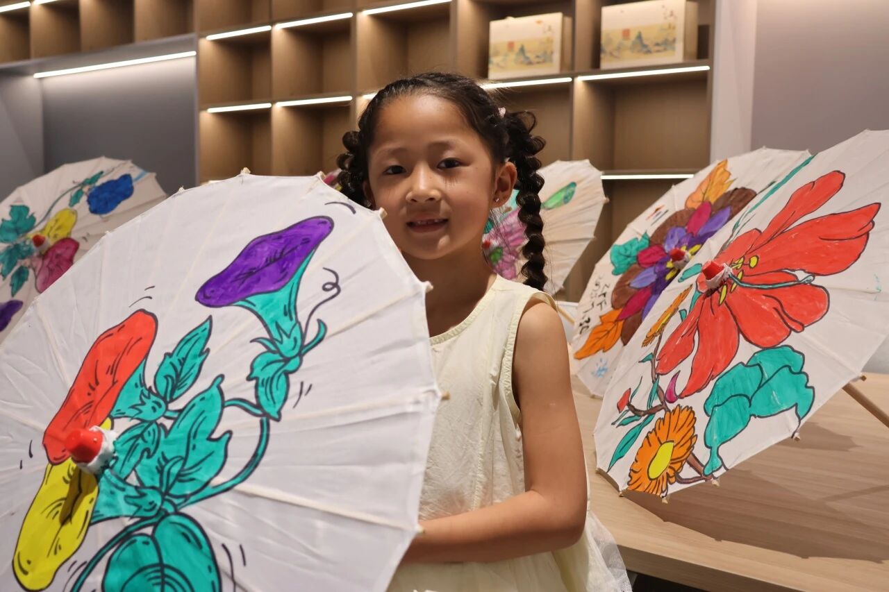 最令人期待的时刻莫过于创作环节!每位小朋友都化身为小小艺术家,领取到一把素雅的油纸伞和五彩斑斓的环保颜料。活动现场瞬间变成了创意的海洋。有的仔细勾勒,有的大胆挥洒,创作出充满想象力的图案……专注的眼神、灵巧的小手,一笔一划间,独一无二的艺术梦想在圆圆的伞面上悄然绽放。