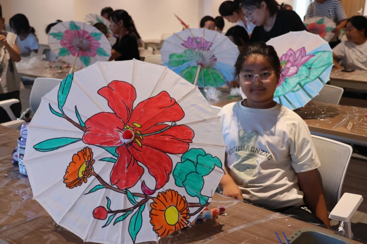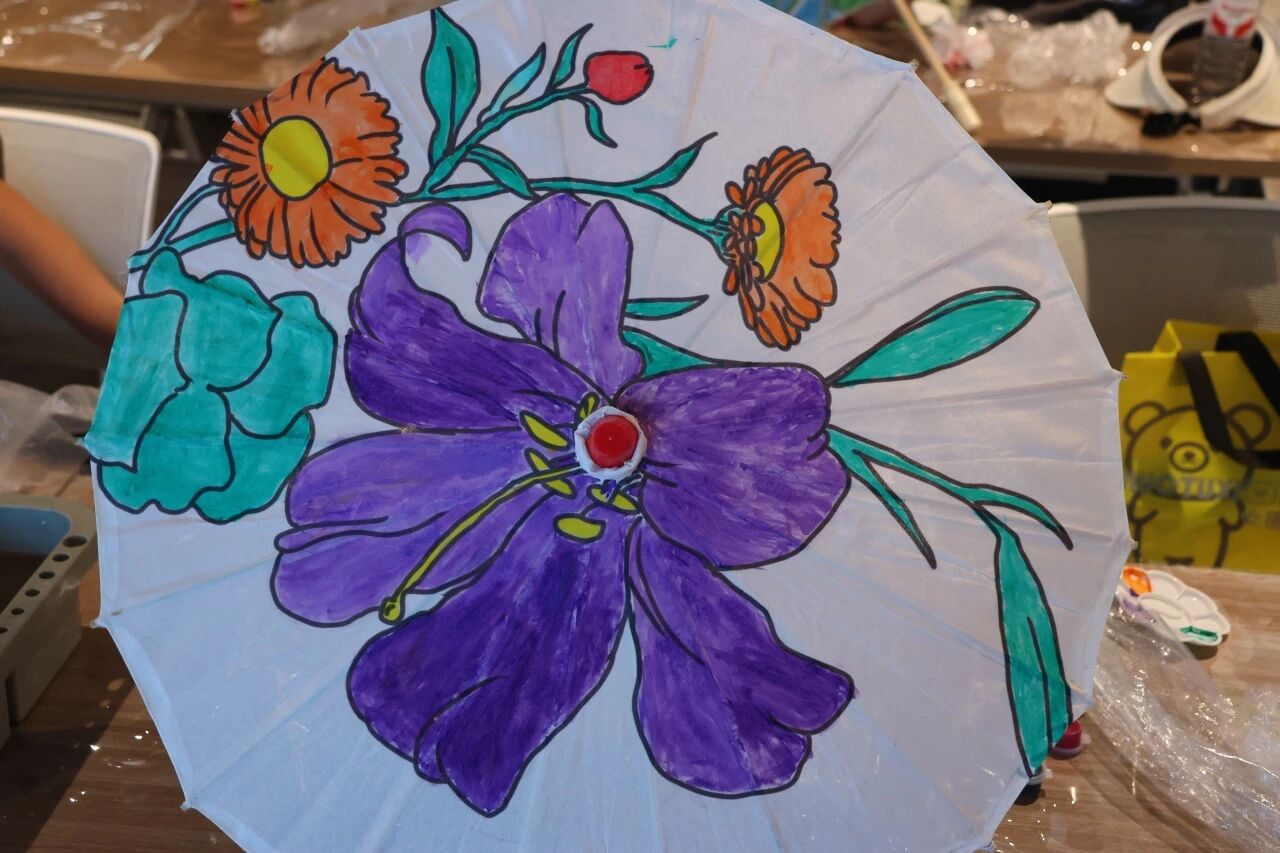 当孩子们骄傲地举起自己亲手绘制的油纸伞时,脸上洋溢着无比的自豪与喜悦!一把把原本朴素的伞,在孩子们的奇思妙想和巧手装扮下,变成了流光溢彩、充满童真童趣的艺术品。活动结束时,孩子们撑着自己创作的油纸伞离开,不仅带走了一件珍贵的作品,更带走了一份独特的艺术体验和满满的成就感。