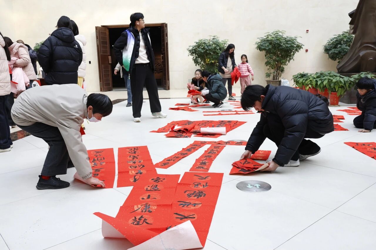 这场活动不仅是新春送福,更是一次 “文化共建”的暖心实践: 沛县博物馆开放文化空间,让传统书法走出展厅、贴近生活; 沛县消防救援大队的“蓝朋友”们平日里守护平安,此刻接过福字,成为被守护的“自家人”;大风歌志愿者协会全程穿梭服务,铺纸晾晒、维持秩序,那一抹“志愿红”格外亮眼。