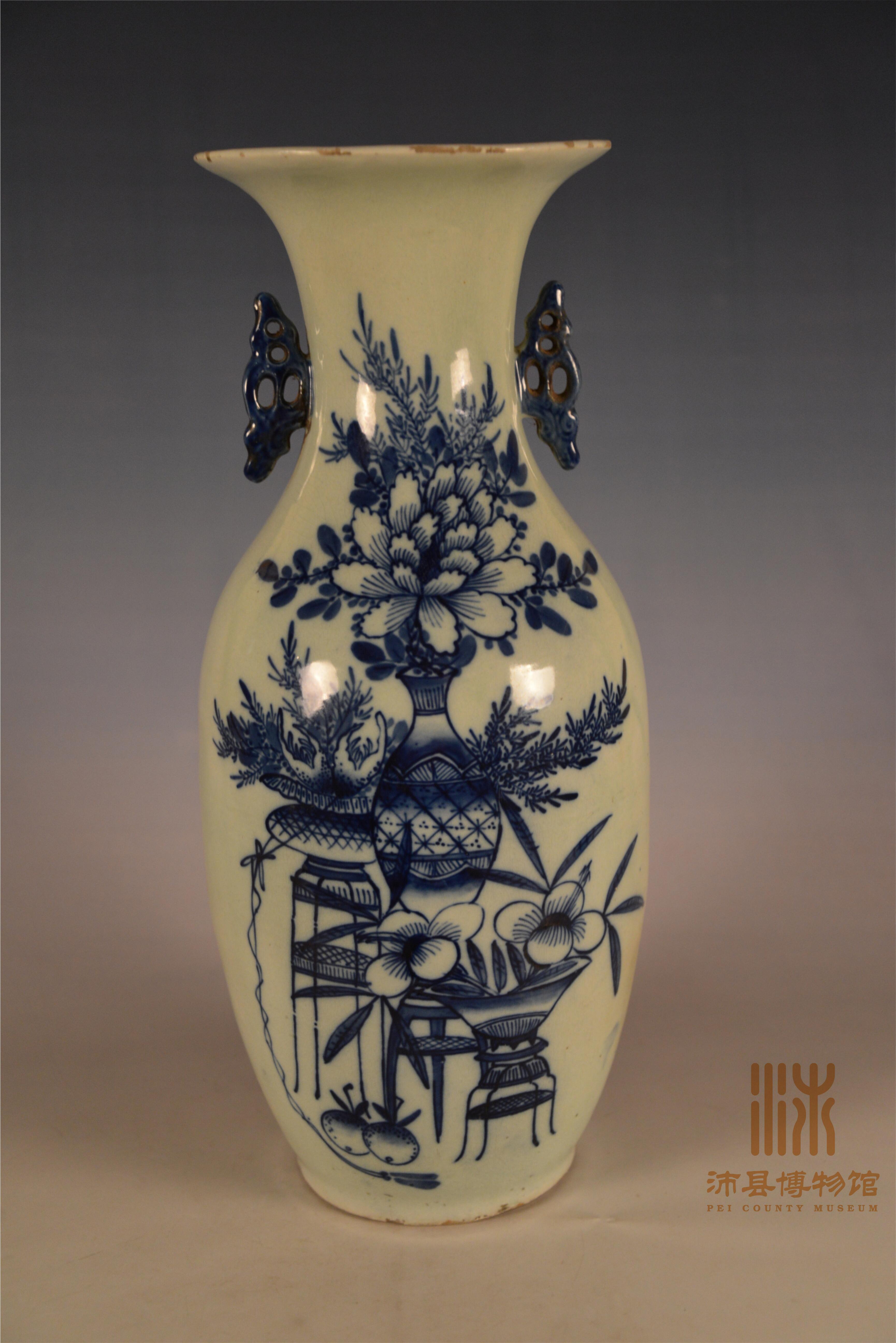 清末期景德镇窑青绿釉青花双耳侈口瓶
